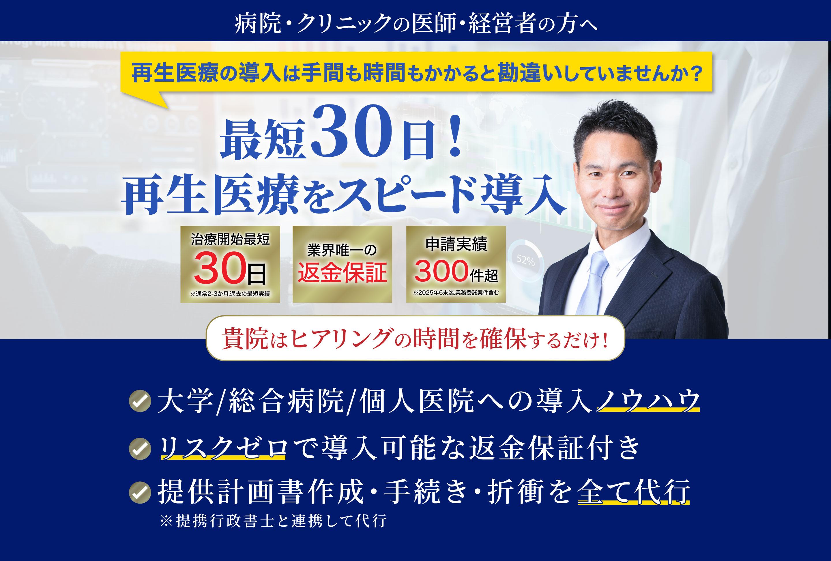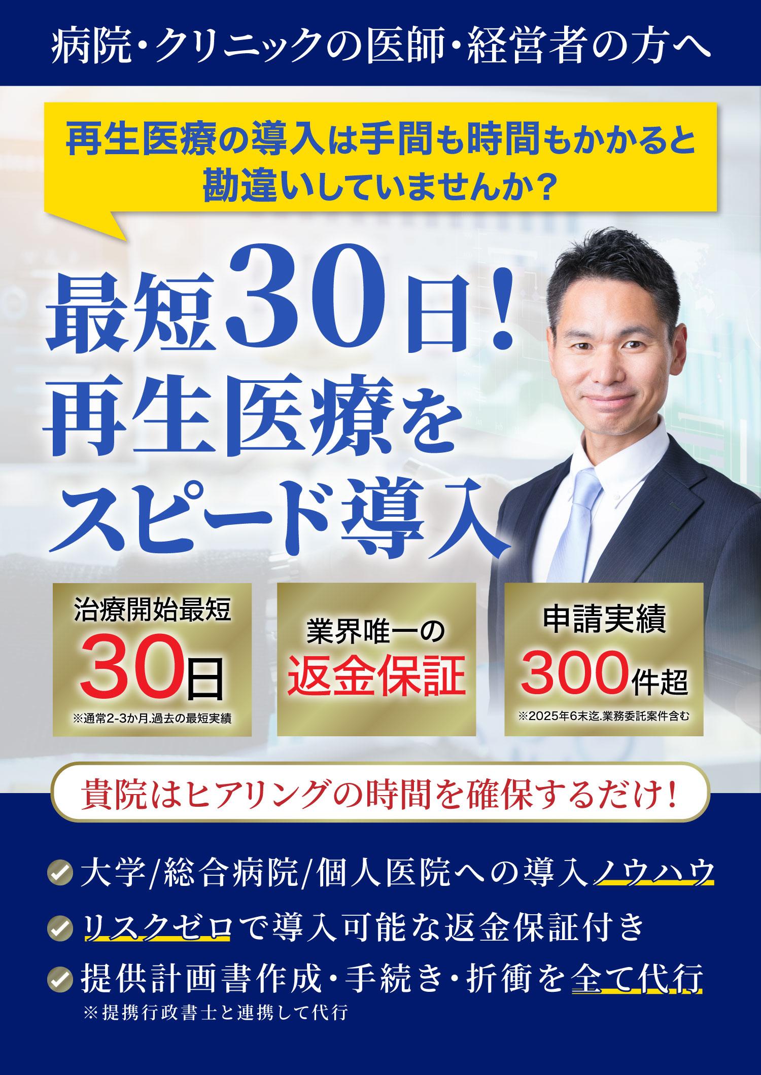 臨床の歴史などもまだまだ浅いこともあり、更なる治療実績と安全性の確保が求めらますが、全国の医療機関において、患者の皆様が「身近な医療」として受診できることを目指し、申請支援サポートを通じて社会に貢献してまいります。